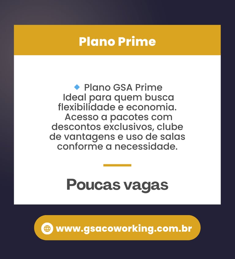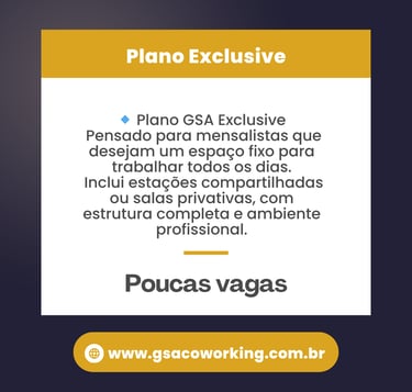 Aqui na GSA Coworking Colaborativo, você tem muitos benefícios, e seu dia a dia será mais produtivo e descomplicado!