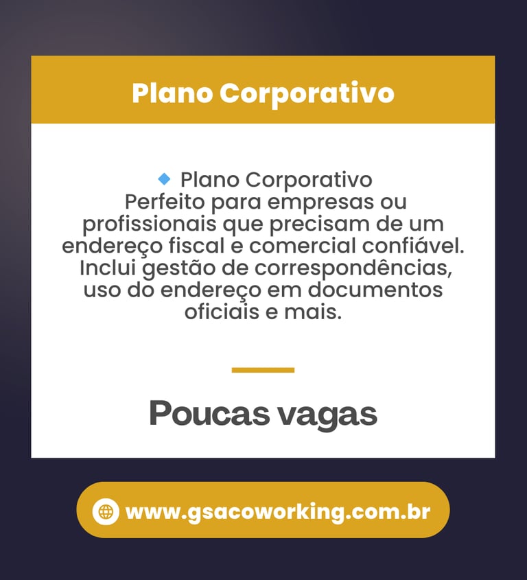 Na GSA Coworking Colaborativo, você pode ter seu endereço fiscal e de sua empresa no coração da cidade.
